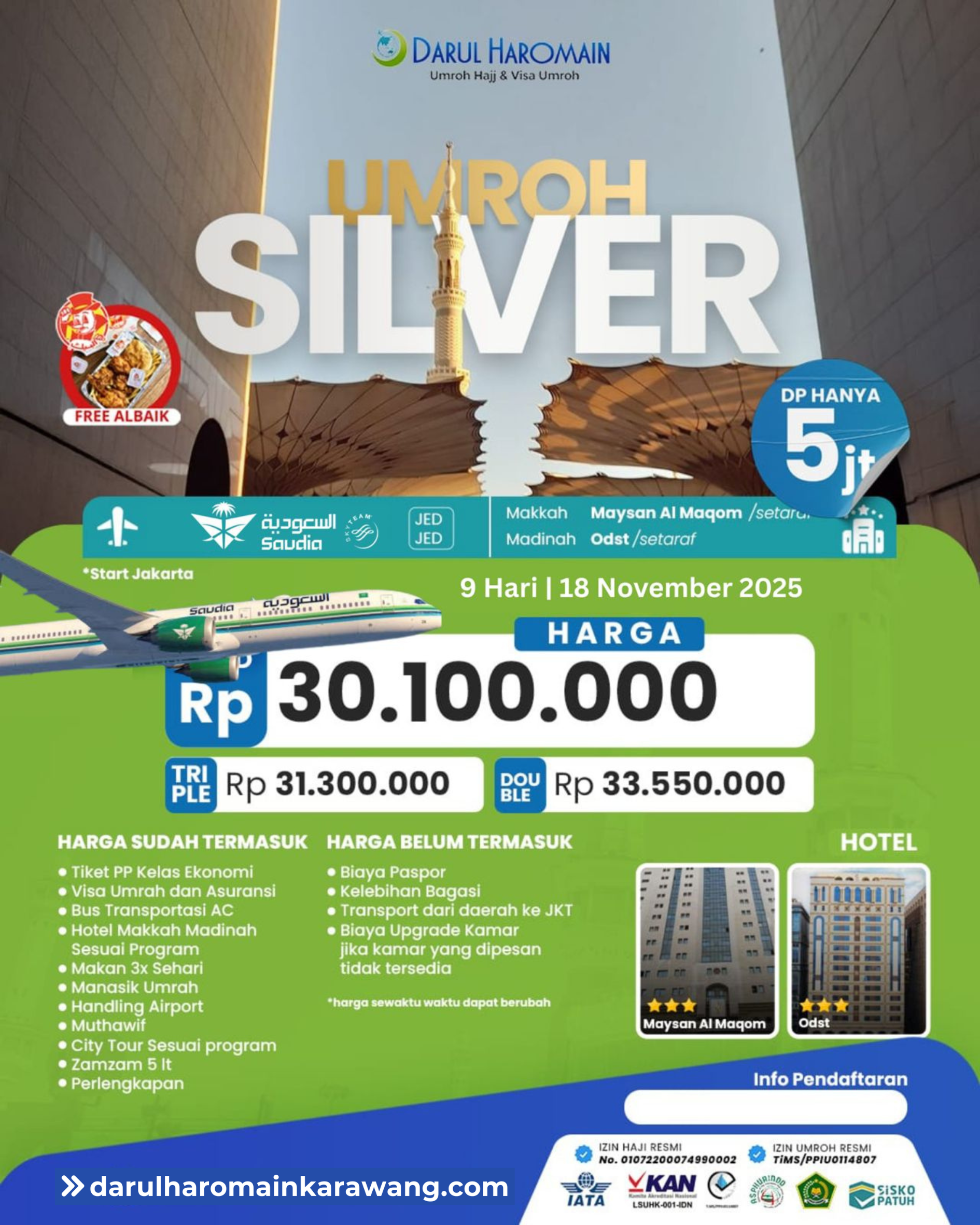 Cukup dengan DP Rp 5 Juta untuk mengamankan kursi keberangkatan Anda.